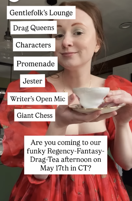 Regency-Inspired 〰️ Bridgerton-Inspired 〰️ Playful Afternoon 〰️ Music & Guided Dancing 〰️ Vendor Promenade Market 〰️ Writer's Open Mic 〰️ Tea + Biscuits 〰️